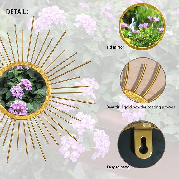 - This wall mirror decoration is made of high-quality metal and high-quality glass, which is sturdy and durable. The gold powder coating design on the outer frame surface is unique and beautiful.
