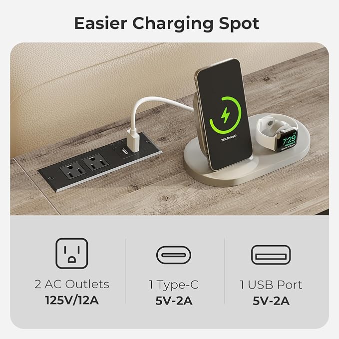 - 【Multiple Sofa back Charging Options】No more diving behind the sofa for an outlet! This sofa table features 2 AC outlets, 1 USB, and 1 USB-C port, perfect for charging your phone, lamp, speaker, or laptop right where you need it, whether behind your couch, in the hallway, or by the entry