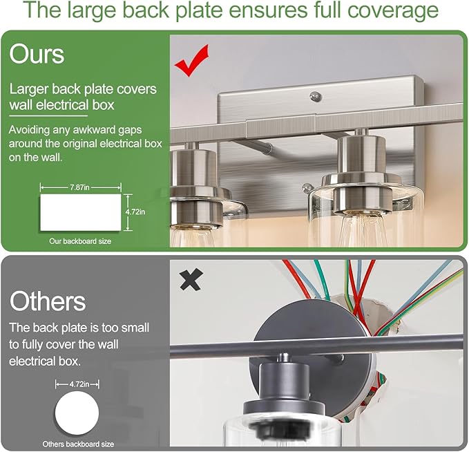 - Timeless Brushed Nickel Design - Enhance your space with this 4-light bathroom fixture, featuring a brushed nickel metal body and thick clear glass shades. Its sleek, modern design complements farmhouse, contemporary, and traditional decor, making it a versatile and stylish addition to any room.