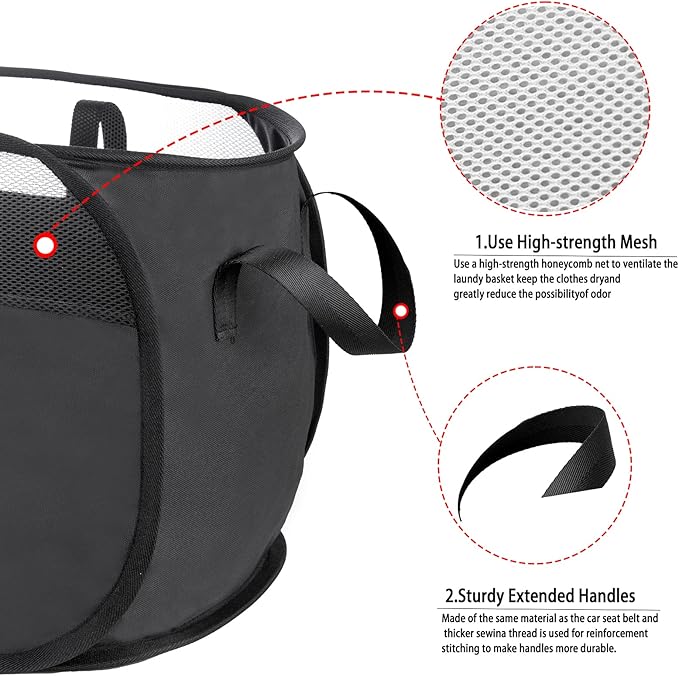 - Premium Materials: Our collapsible laundry baskets is made with a perfect combination of cationic fabric and mesh, making it extremely durable and long-lasting.