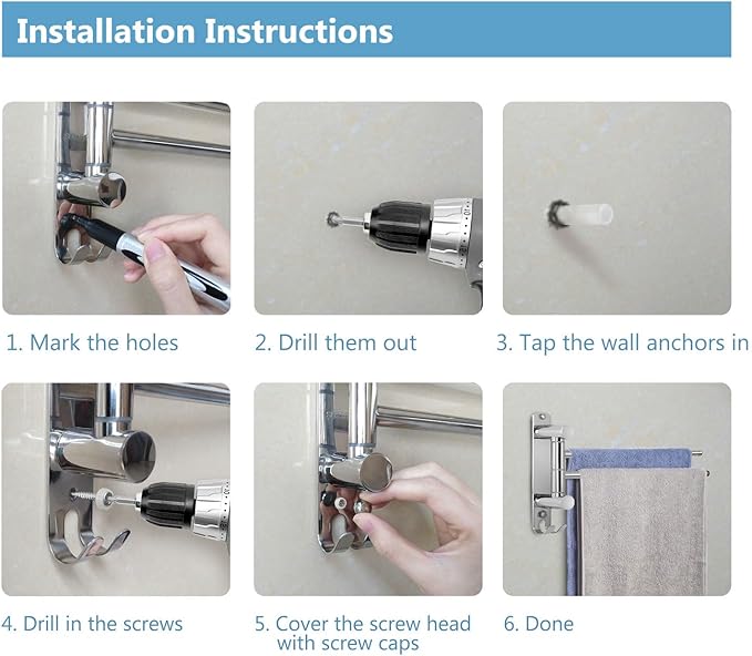 - Rotates 180°: Multiple swivel arms allows you to spread out the desired arms for easy drying, and swivel them back against the wall to save space. The arms of this item are relatively short. Please measure in advance of purchase.