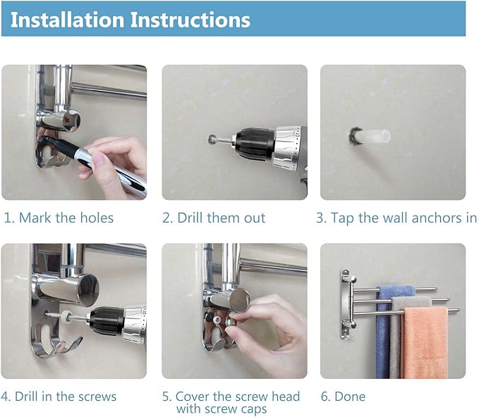 - Rotates 180°: Multiple swivel arms allows you to spread out the desired arms for easy drying, and swivel them back against the wall to save space. The arms of this item are relatively long. Please measure in advance of purchase.