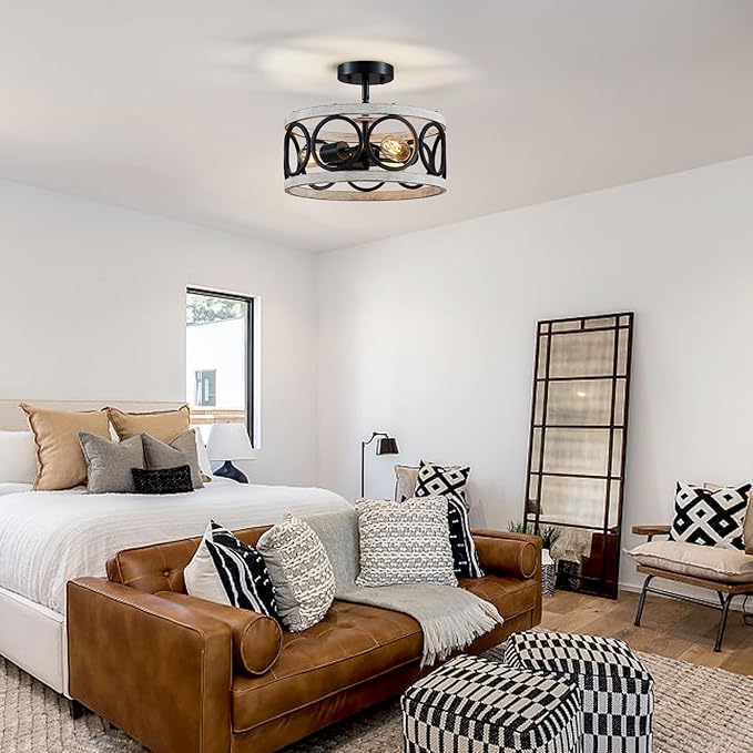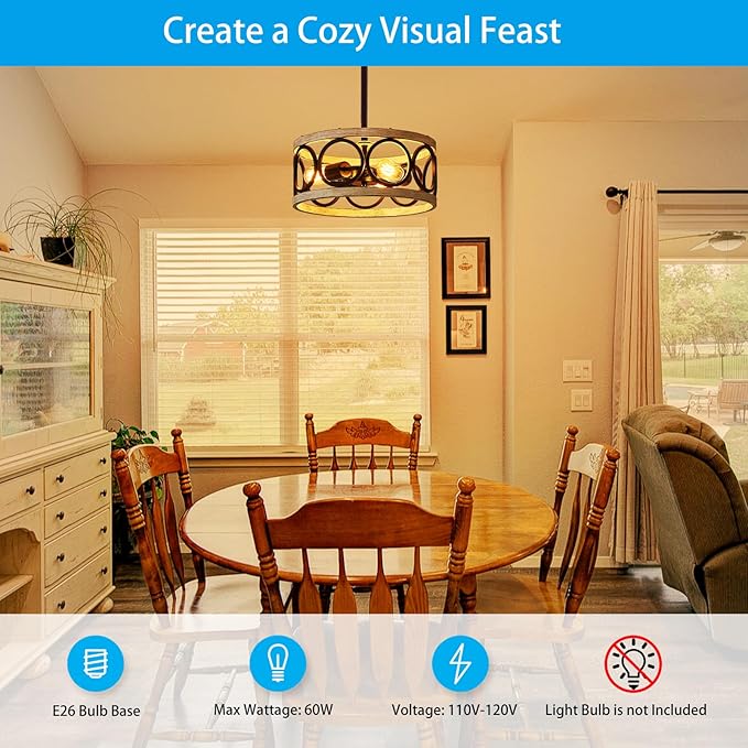 - EXQUISITE DESIGN: Make your dining room look stunning with this farmhouse chandelier. Its unique open drum frame, with an antique wood grain and white finish, adds a touch of rustic charm to any decor style. Unlike plastic chandeliers, this one is made of durable metal and is sure to impress.