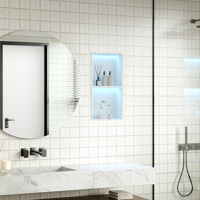 - 【Visual Appeal】Adding RGB lighting to a stainless steel shower niche can dramatically enhance the visual appeal of your bathroom, adding a modern and eye-catching element to the shower area.