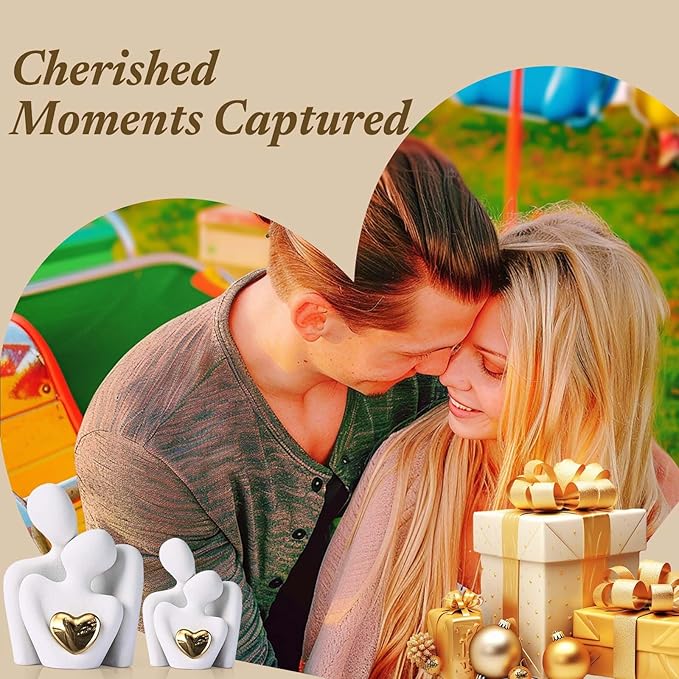 - Couples Bedroom Decor: This ceramic 'Hugging Couple Statue' embodies love and intimacy as the couple figurine shares a gaze, with a shining gold heart at the center, symbolizing a bright and precious bond. It's a mini yet impactful piece that brings a symbolic sparkle to any room, from the living room to the love office decor.