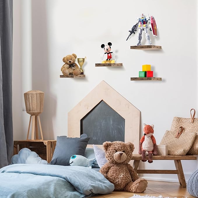 - Easy To Install Book Shelves: Our small floating shelves are made of beautiful faux wood with a smooth matte finish (not solid wood). Minor assembly is required. Attaches firmly to the wall. Mounting hardware is included. Wipe clean with a dry cloth. Supports up to 8 pounds per shelf