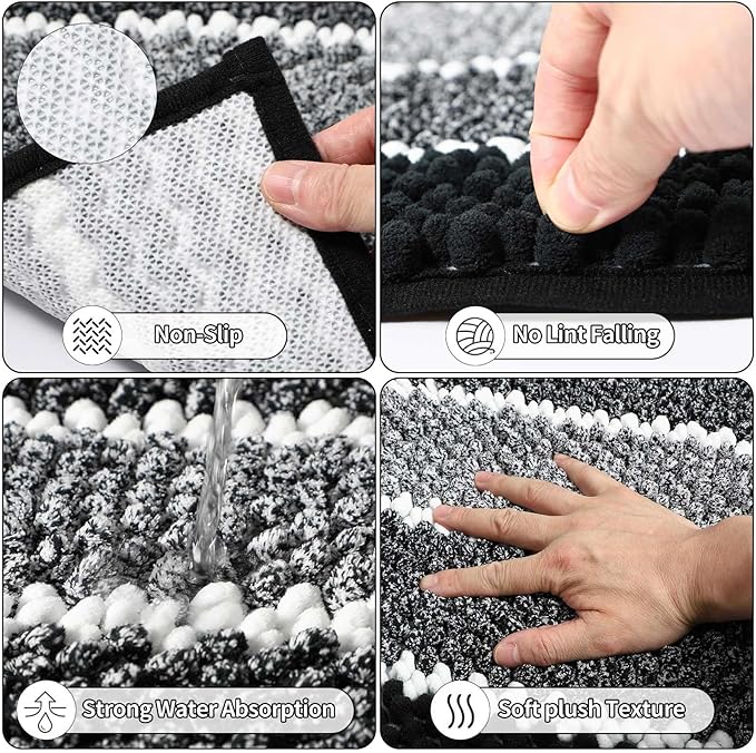 34PCS Black Bathroom Accessories Sets Complete, with Shower Curtain, Rugs, Trash Can and Toilet Brush, 3PCS 17oz Soap Dispenser Wall Mounted, Toothbrush Holder and Cup, Soap Dish, Qtip Holder