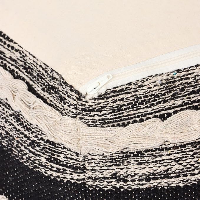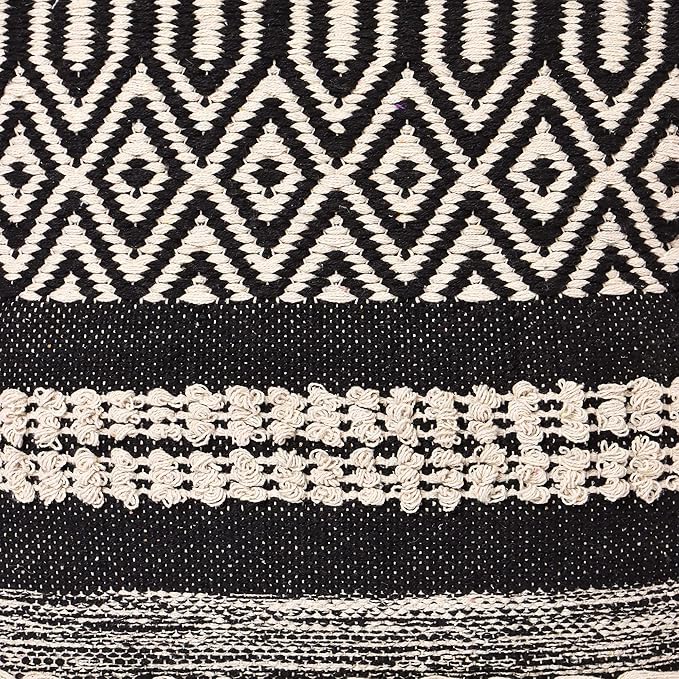 - BEAUTIFULLY DESIGNED AND HANDCRAFTED: The 100% cotton indoor patio Poof comes in a variety of textured patterns that is made on handlooms by skilled artisans offering an excellent choice for foot stool and a convenient way to add comfort and style to your space. Choose your indoor hassock from wide options available that are handcrafted by mix and match of weaves, tassels and prints. It compliments modern, contemporary, boho or farmhouse decor.