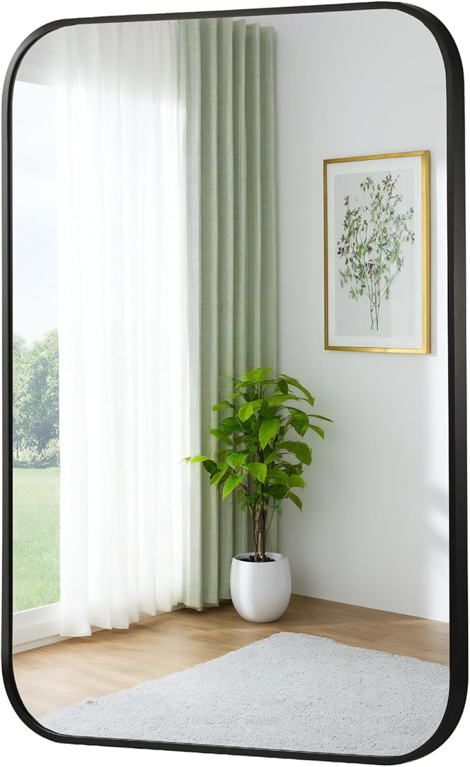 FARMER 24x32 Inch Black Bathroom Mirror, Rectangle Vanity Mirror, Brushed Mirrors for Wall, Metal Frame Hanging Mirror with Round Corner for Bedrooms, Entryways, Living Rooms, Horizontal/Vertical