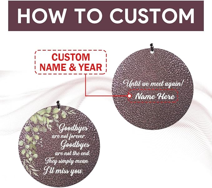 - 🌻🌻Personalized Mourn Wind Chimes: With printed green leafs and some words like "Goodbye's are not forever, goodbyes are not the end. They simply mean I'll miss you." on the one side of catcher, another side of catcher is cusomized the name you want. It provides comfort and convey love to a grieving friend who has lost a loved one such as parents and so on,