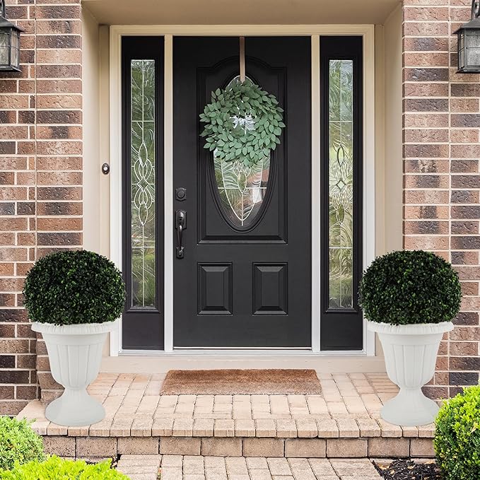 - YEAR-ROUND USE - The recycled polypropylene material is tough enough to endure heat and cold, so you can enjoy these porch planters outdoors all year long. Use the garden planter urns for flowers in the summer, then display artificial greenery in winter.