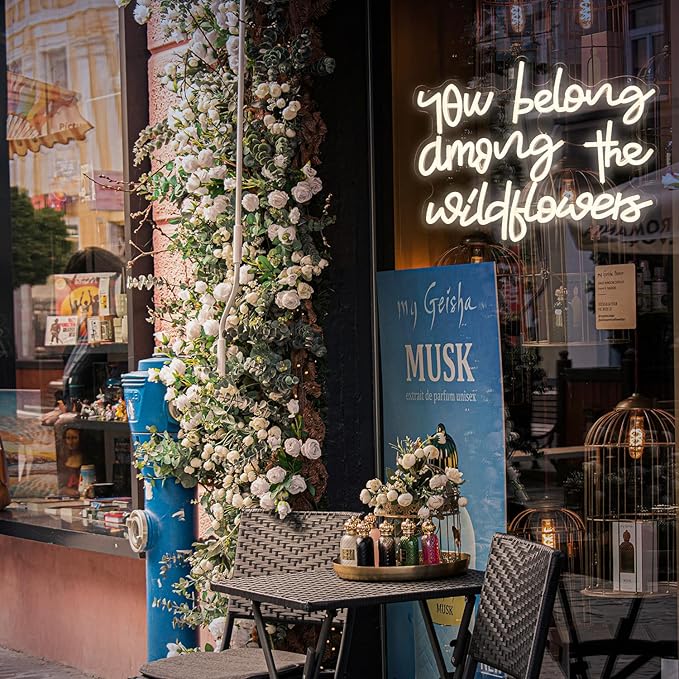 - Advanced materials: You belong among the wildflowers. The neon lights are made of LED flexible strip lights and acrylic boards, with soft and even light, low voltage, reduced energy consumption, and also have a positive impact on the environment.