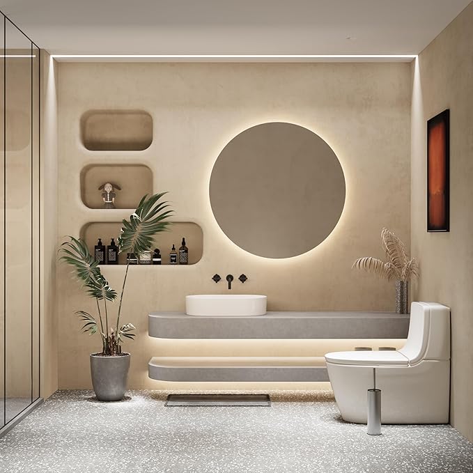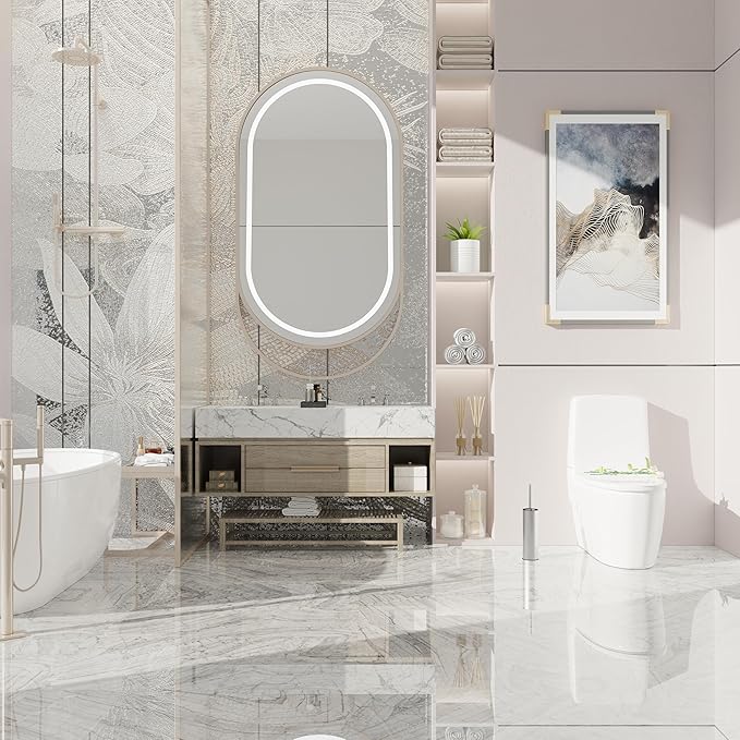 WELLFOR LED Bathroom Vanity Mirror 28 x 36 Inch, Lighted Anti-Fog Dimmable Mirror, IP44 Waterproof Wall Mounted Makeup Mirror, Packed with US Standard Plug and Touch Switch, (Horizontal/Vertical)