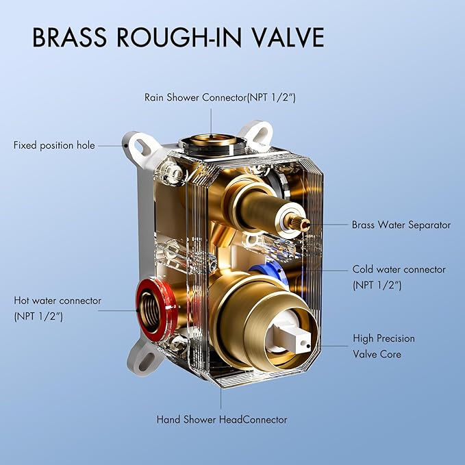 - 【Patented 3-way Diverter】 Our shower faucet set features a patented 3-way diverter, allowing you to easily switch between the overhead shower, hand shower, or both, providing ultimate convenience.