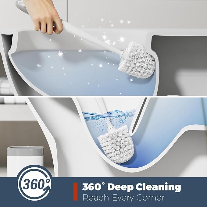 - 【360° Clean】The toilet brush head with classic design cleans the grooves and the lower edge of the toilet bowl