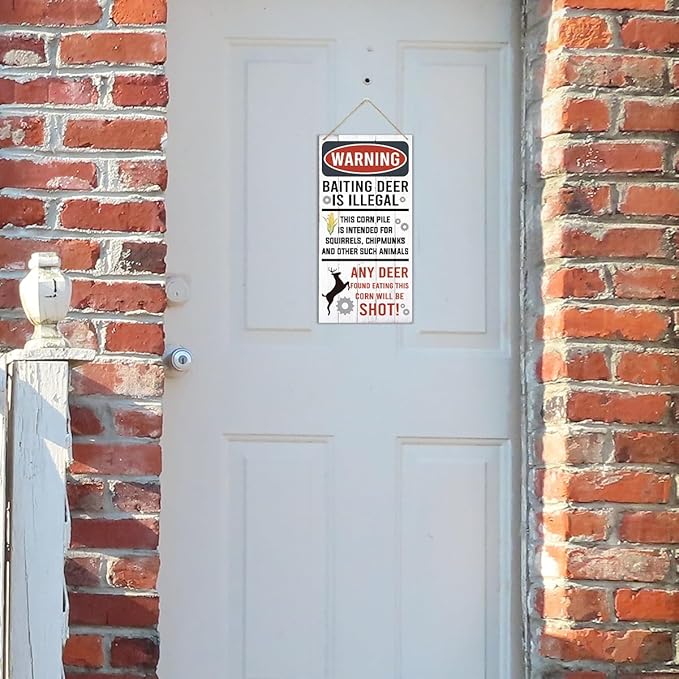 Warning Signs, Funny Hunting Sign Wall Decor, Baiting Deer Is Illegal Sign, Decorative Wood Hanging Wood Plaque, Man Cave Bar Cabin Decor, Pub Decor, Farmhouse Wall Decor for Coffee & Bar