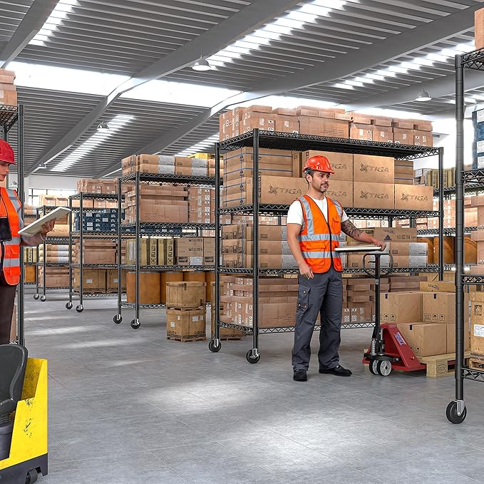 - 【2399LBS Capacity Storage shelves Heavy Duty】Storage shelves is constructed of sturdy, heavy-duty wire shelving and 25.4 mm diameter metal rods. Each thickened metal storage shelf has additional support ribs under the mesh, Adjustable feet with a total weight capacity of 2399lbs and wheels with a total weight capacity of 661 lbs(Dynamic load-bearing capacity of the pulley 331 pounds, static load-bearing capacity of the pulley 661pounds). This shelves is perfect for business shelving organizations.
