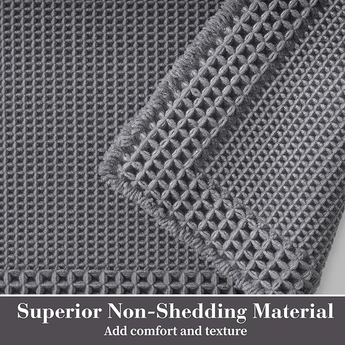 - SUPER ABSORBENT BATH MAT: Our bath mats are designed with a textured waffle pattern that enhances their absorbency. The breathable waffle-like indents and upgraded thick yarns will quickly soak up water from wet feet or drips after a shower and keep the surface dry.