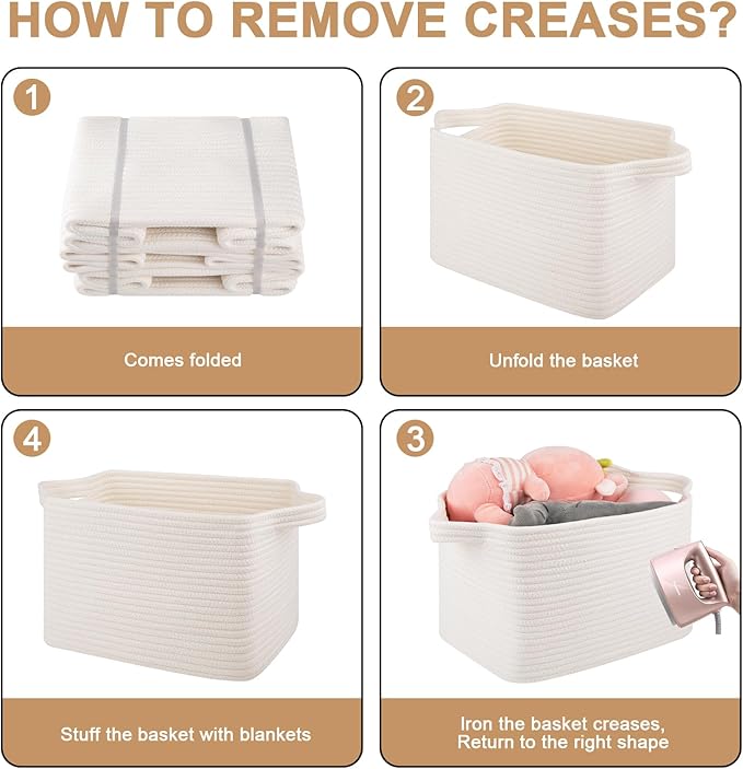 - Important Note: The premium toy baskets are packed compact for shipping, you may find some crease on the item, you can fully fill the basket with towels or clothes to reshape the basket. Steaming or Ironing could reshape the basket as well