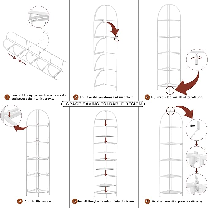 - 【Foldable Design And Effortless Assembly】Our Crofy corner shelf can be folded to store when not in use. You can fold or unfold it in a few seconds without any assembly. With its foldable design, it only takes up a small space, which can save your space.