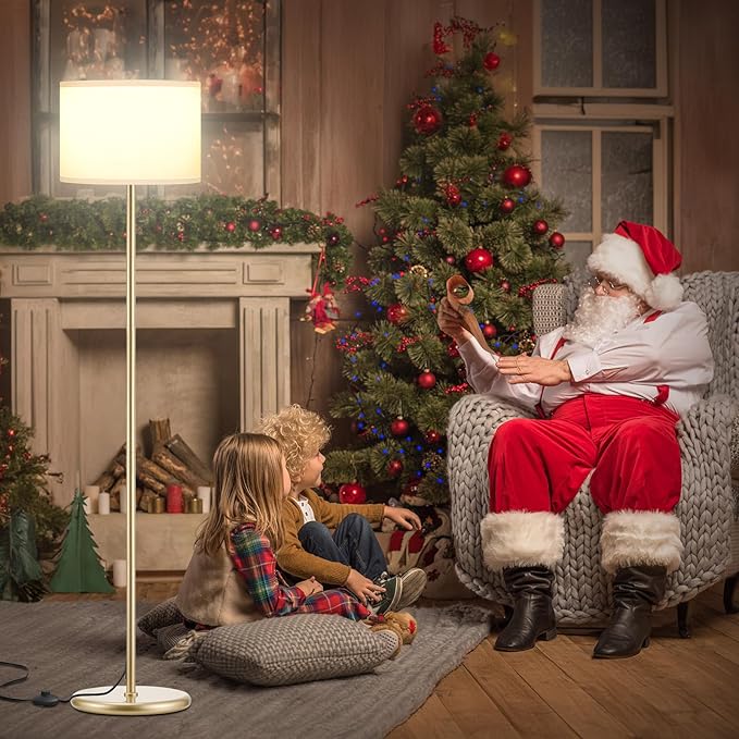 Ambimall 60'' Modern Floor Lamp with Shade, Tall Lamps for Living Room, Bedroom, Office, Dining Room, White Shade with Gold Pole(Without Bulb)