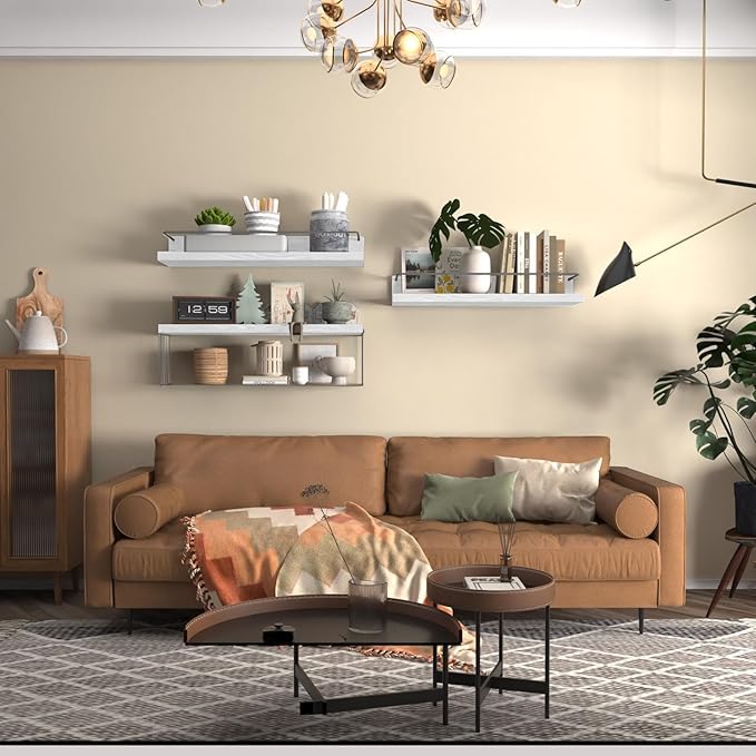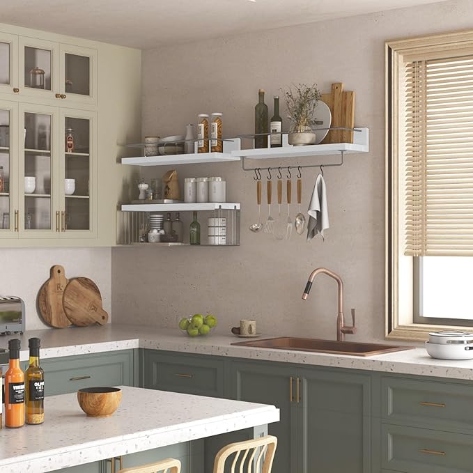 22.5 inches Bathroom Shelves Over Toilet for Wall, Floating Shelves with Storage Basket Paper Holer for Kitchen Living Room, Bedroom & Classroom, Set of 3 (White and Grey)
