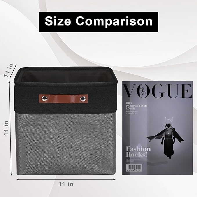 Collapsible Fabric Storage Cubes 11x11 Cube Storage Bins, 4 Pack Closet Baskets Box with Handles for Organizing, Shelf, Toys, Clothes, Home, Office, Nursery (Grey&Black)
