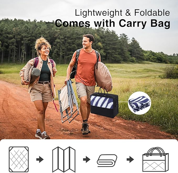 - Portable & Convenient: Lightweight and foldable, our waterproof rugs are easy to transport and store, making them ideal for travel and camping. They even come with a matching carry case for effortless portability.