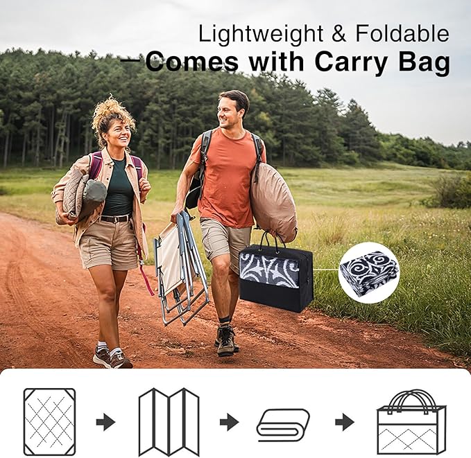 - Lightweight & Portable: Ultra-lightweight and foldable, this outdoor rug is a breeze to carry and store. Take it to picnics, beach outings, or camping trips with ease. Perfect for casual outdoor gatherings, it combines practicality with effortless portability.