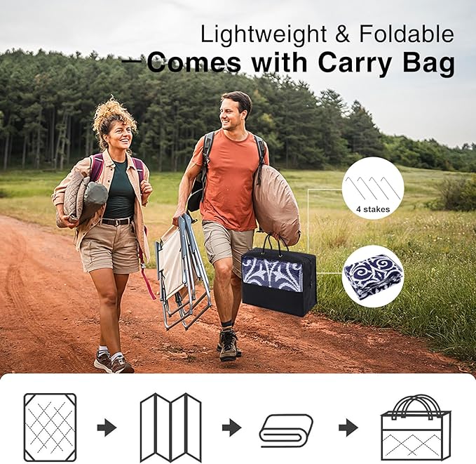 - Lightweight & Portable: Ultra-lightweight and foldable, this outdoor rug is a breeze to carry and store. Take it to picnics, beach outings, or camping trips with ease. Perfect for casual outdoor gatherings, it combines practicality with effortless portability.