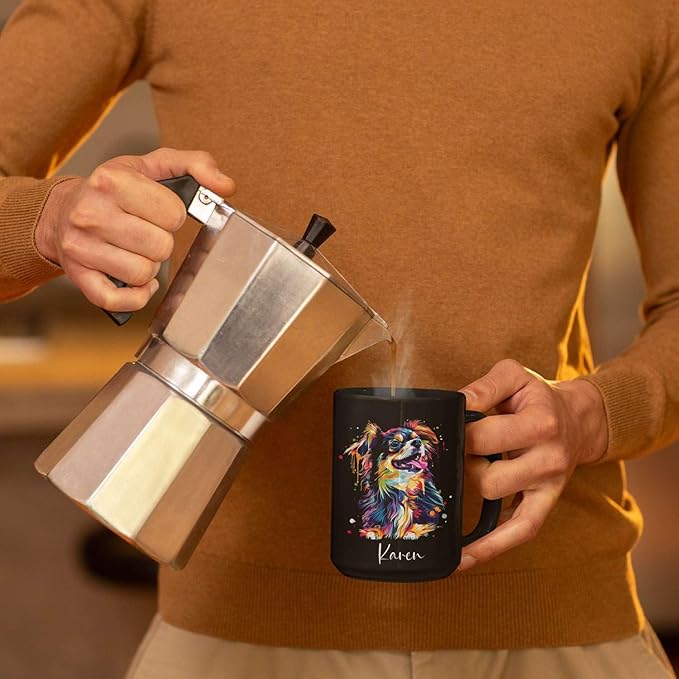 - 💝 NOVELTY DESIGN MUG: Show your love for dogs with this Dog Coffee Mug With Custom Name, personalized with a custom name and a vibrant dog design. Ideal for any dog lover, this novelty ceramic cup is available in 11oz and 15oz sizes. Click 'Customize Now' to create a unique and thoughtful mug gift for dog owners that they’ll cherish with every sip.