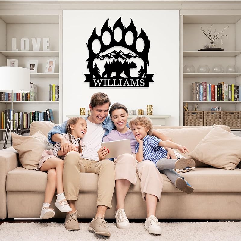 Personalized Bear Paw Metal Wall Decor, Rustic Forest Bear Wilderness Sign, Forest for Living Room Indoor Decor, Rustic Cabin Hunting Bear Paw Signs