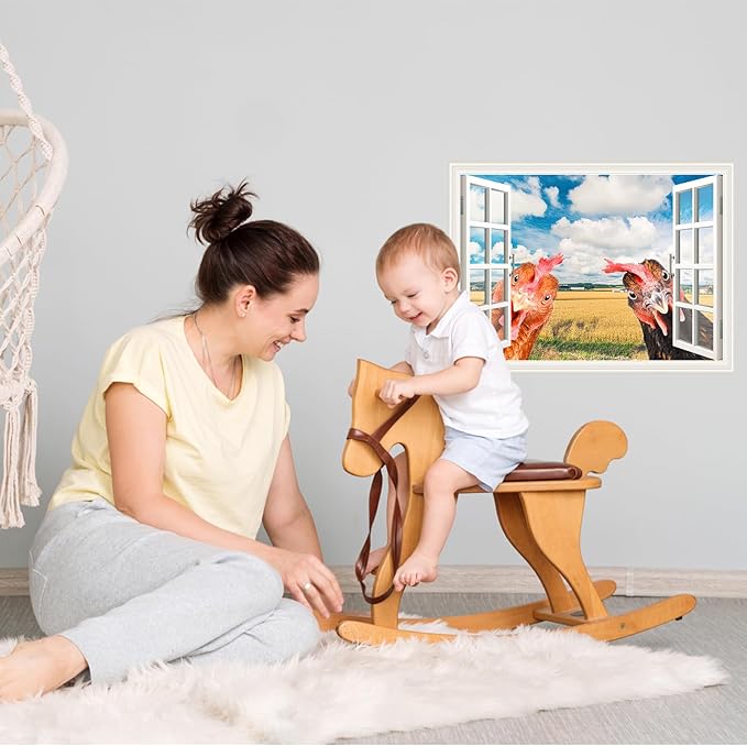 Funny Chicken Wall Stickers Peel and Stick - 2 Hens Head Looking Inside from Window - Cute Chicken Wall Decals Removable - Chicken Lover Gifts Wall Decor for Bedroom Farmhouse Kitchen Dorm