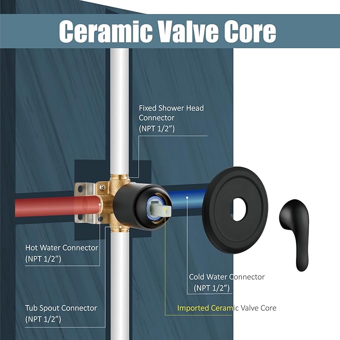 - 【3-Functions】: Triple water outlet modes: 8-settings shower head, 8-settings handheld spray and tub spout of this shower valve kit can offer you a good experience of shower.