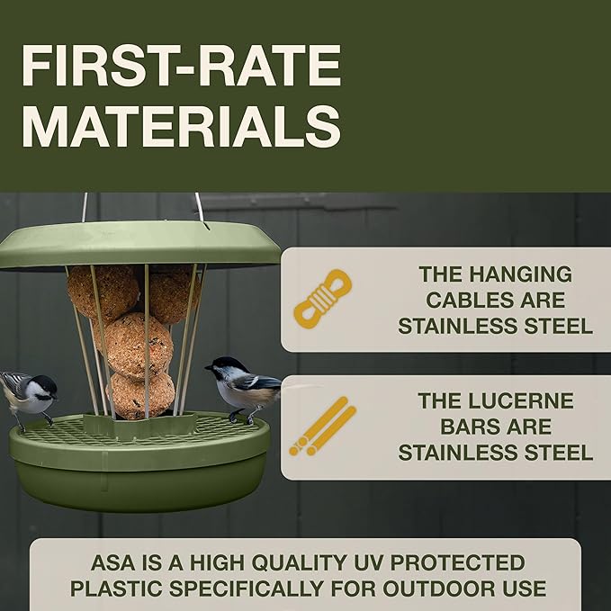 - 🐦 HOLDS UP TO 7 FAT BALLS: Stainless steel rods accommodate up to seven 85g fat balls – perfect for feeding a variety of birds like tits, sparrows, and finches.