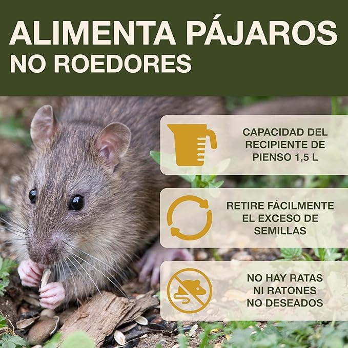 - 🐀 MOUSE/RAT PROOF DESIGN: Special hanging system and smart catch tray keep mice and rats away from bird food – feed only wild birds, not pests; ideal for gardens and balconies.