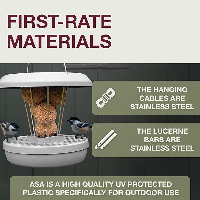 SWISSINNO No Mess Bird Feeder Lucerne Smart Birds for Fat Balls - Feed Birds, not mice & Rats! Robust & Reliable for Hanging - Light Grey