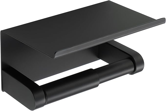 - TWO WAYS OF INSTALLATION: Wall mounted toilet paper holder black provides you with two installation methods.1.Self adhesive toilet paper holder, no drilling required.2.Drilled mounting, for uneven surfaces, can be drilled and mounted with screws. All mounting hardware is included in the package and installation can be completed in less than five minutes.