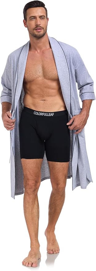COLORFULLEAF Men's Bathrobes 100% Cotton Soft Comfort Breathable Short Sleeve Summer Kimono Mens Lightweight Robe