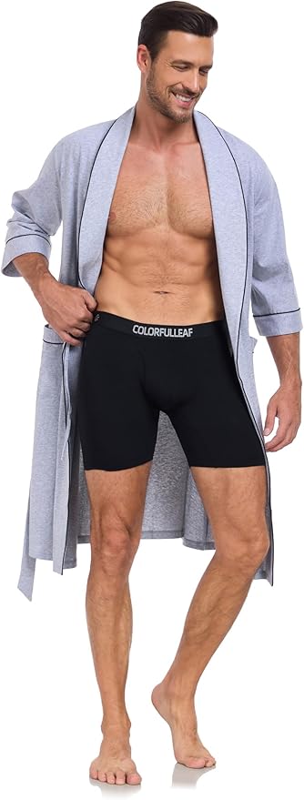 - Premium 100% Cotton Fabric: Our mens robe features medium-weight cotton that's lighter than terry cloth robes yet warmer than polyester. The breathable natural fibers provide perfect insulation to maintain body warmth while remaining soft and skin-friendly. Experience optimal comfort with balanced thickness that's neither bulky nor thin.