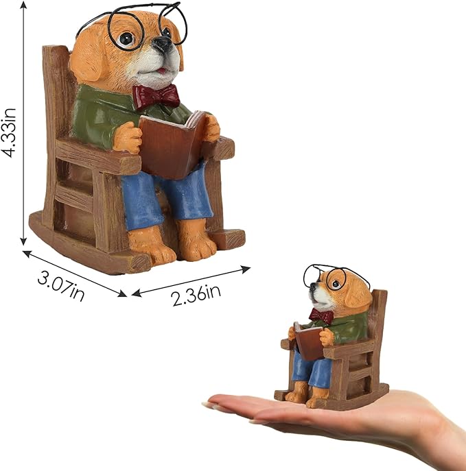 - Perfect Solar Dog Christmas Decoration - This charm dog statues outdoor solar lights, reading a book on a cozy rocking chair, cute and creative, add more warmth atmosphere to your home, win your neighbors' attention at Christmas. Christmas dog ornaments lifelike detail and relaxed pose make it a delightful addition for dog lovers and book lovers alike.