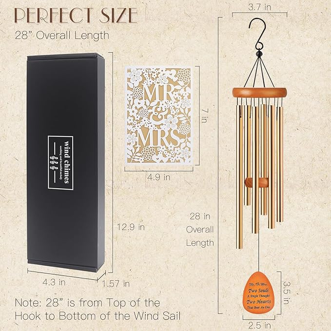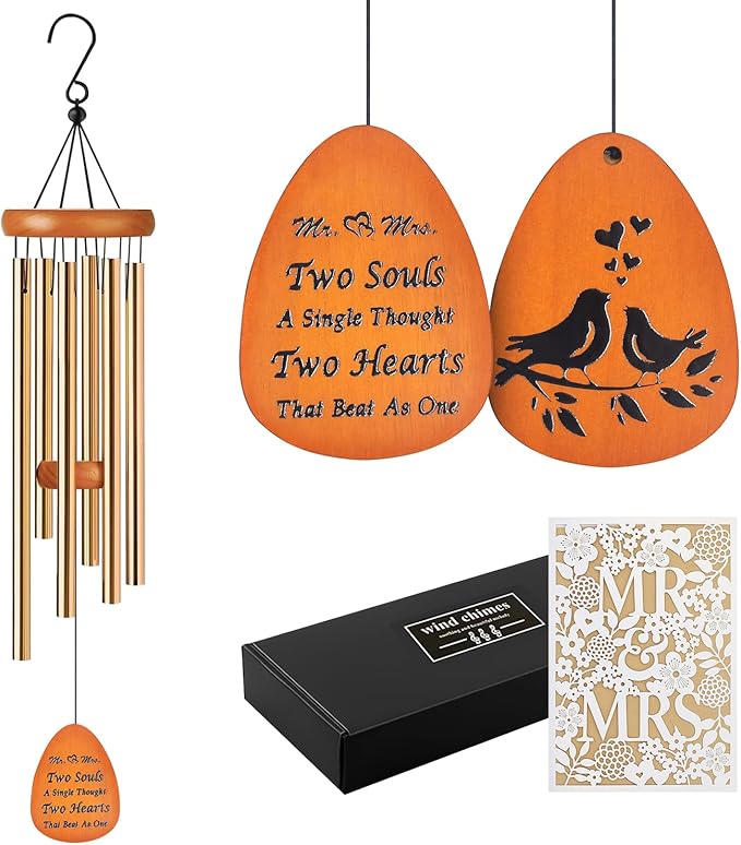 - Wedding Gifts for Couples Express your warmest and most sincere wishes to the newlyweds with our unique wedding wind chimes, wishing them a beautiful journey of marriage. The beautiful melody of the wind chimes will remind them of their love and commitment to each other, symbolizing the happiness and joy of their marriage, this wind chimes is an ideal gift for newlyweds, couples, brides, and grooms.