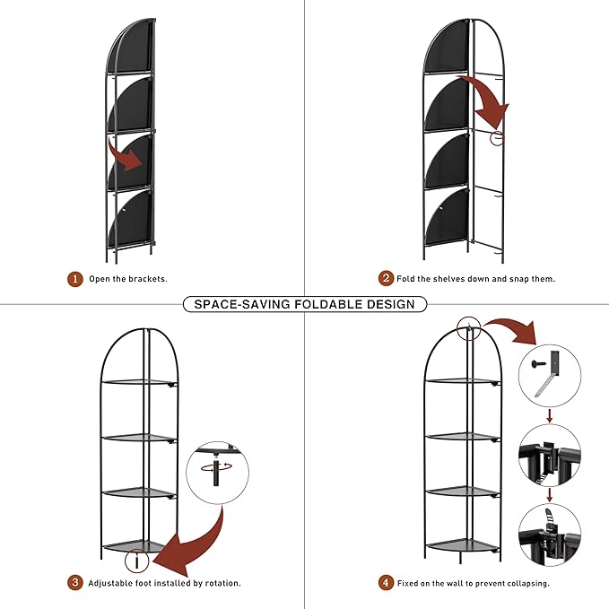 - 【Foldable Design And Effortless Assembly】Our Crofy corner shelf can be folded to store when not in use. You can fold or unfold it in a few seconds without any assembly. With its foldable design, it only takes up a small space, which can save your space.