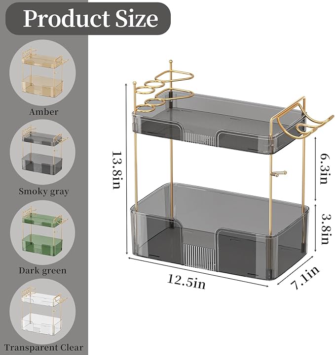 - Large Capacity: This organizer 2 tier measures 12.51''D x 7.1''W x 13.8''H, 3 tier measures 12.51''D x 7.1''W x 21.1''H (Please measure your countertop space before purchase). Perfect for organizing skin care products, cosmetics, perfume or anything you like, save space and increase storage capacity