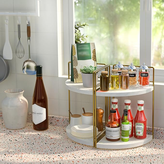 - ▶FUNCTIONAL COUNTERTOP ORGANISER : This 2 tier bathroom organizer countertop, can be used as a cosmetic organizer, spice organizer, coffee organizer and more. The modern wooden elements of thebathroom countertop organizer your counter and is a great addition to your home.