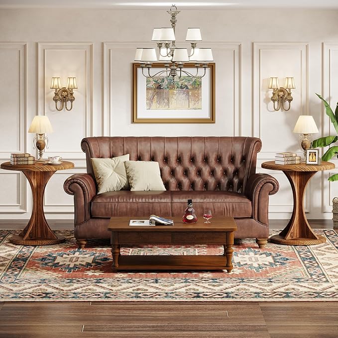 - Vintage Appearance: Its classic round design pairs a rustic brown tabletop with an hourglass-shaped pedestal. The natural wood texture enhances its aesthetic appeal, infusing depth and charm into your room. This side table not only serves as a functional piece but also sparks creativity in home decor, making it a striking addition to any space