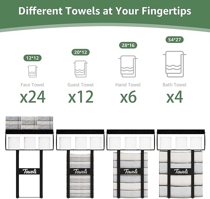 - Efficient Storage: 6.7"D x 15.7"W x 1.5"H, maximize vertical space, different towels at your fingertips