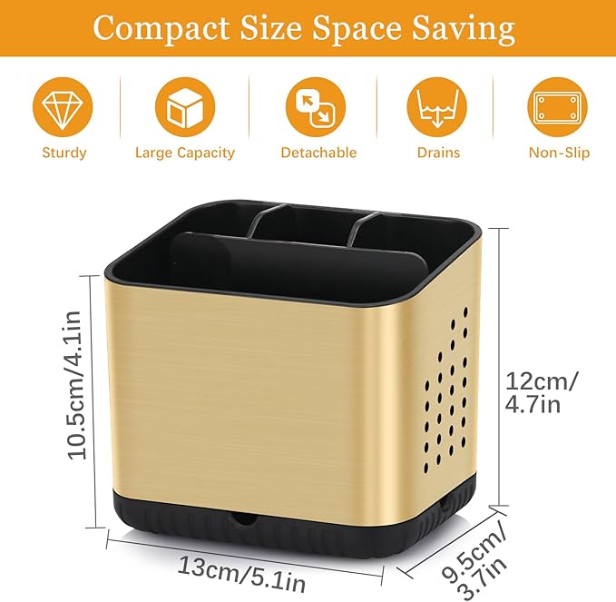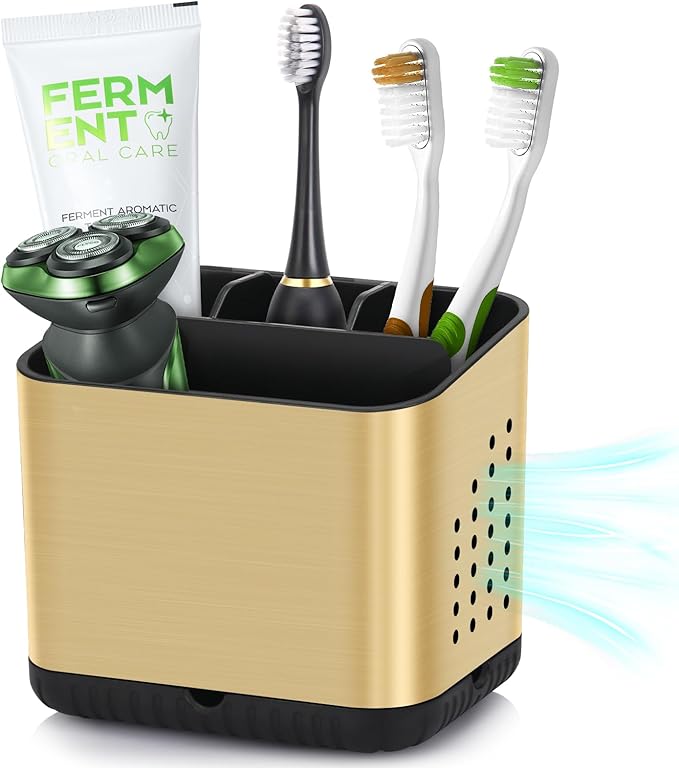 Toothbrush Holders for Bathrooms, Tooth Brush Holder for Bathroom Countertop Organizer, Kids Electric Toothbrush and Toothpaste Holder (Brushed Gold)