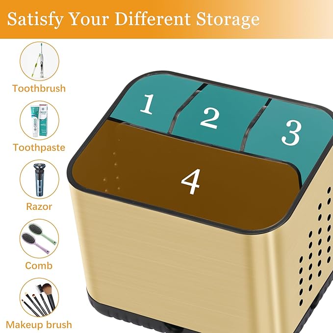- DETACHABLE DESIGN:The toothbrush holders for bathrooms has a removable and compartmentalized design, with a total of 4 slots, it has enough capacity to store different kinds of bathroom storage, which greatly saves the storage space on the bathroom countertop. The removable design of the electric toothbrush holder is also easy for you to clean.