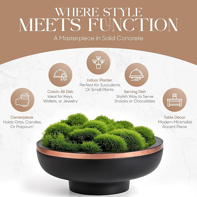 - 【ELEVATED DESIGN】 Our concrete centerpiece bowl makes a bold impression in minimalist, farmhouse, or industrial décor. It complements wooden, stone, or metallic accents and holds fruit, potpourri, or decorative orbs beautifully.